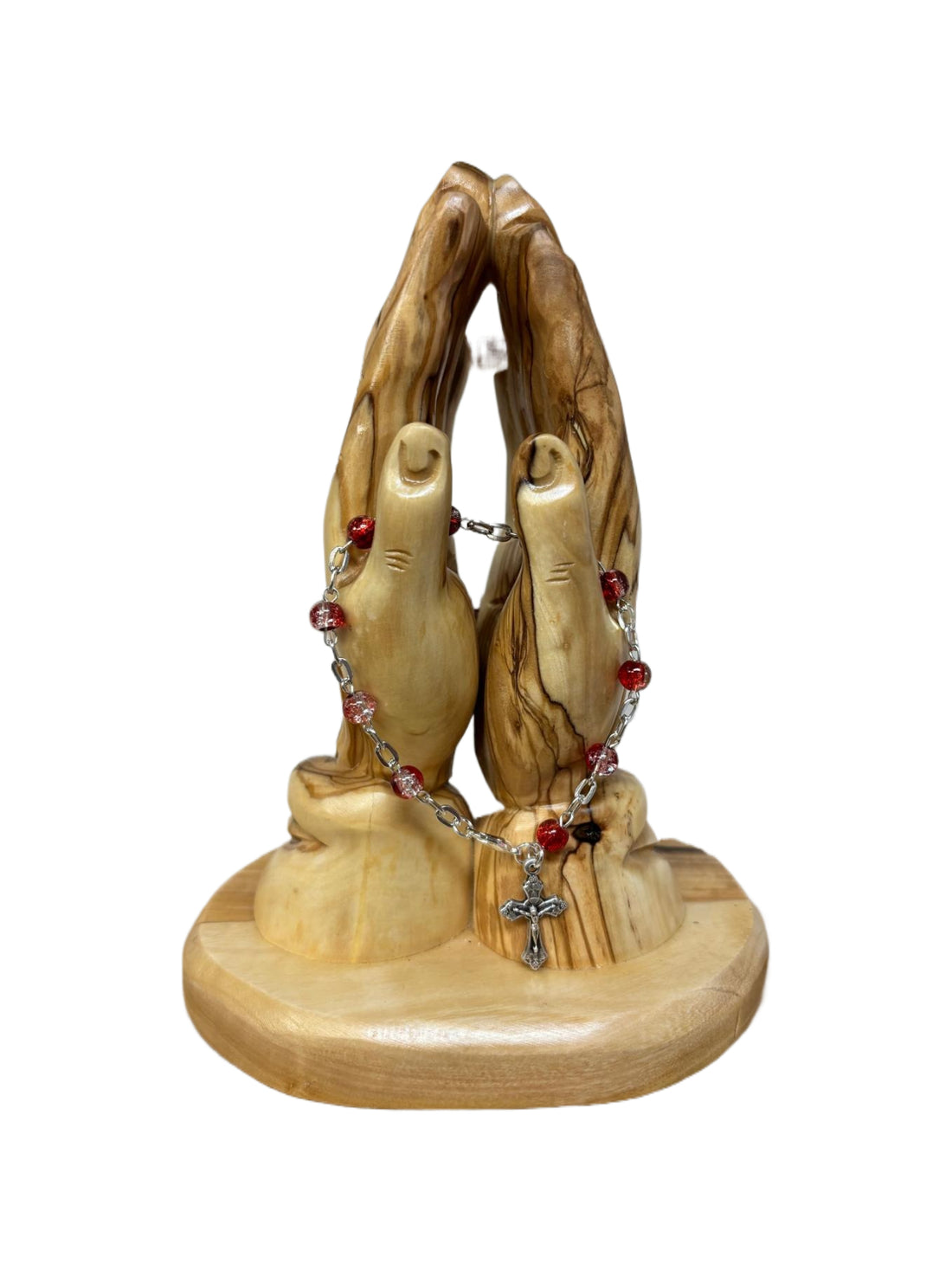 Red Crystal Rosary Bracelet with Silver Crucifix
