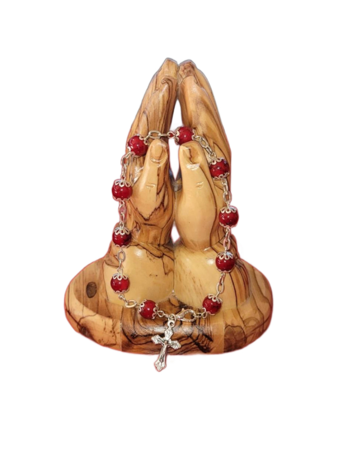 Handmade Rosary Bracelet with Silver Crucifix – Red Beads
