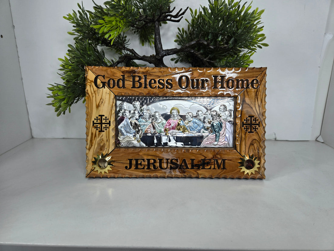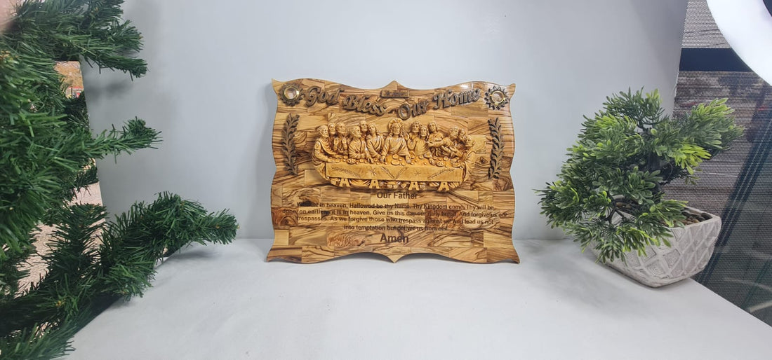 Carved in Bethlehem from ancient olive trees, these plaques beautifully combine tradition and faith. Each piece features unique grain patterns and sacred Christian imagery, making it both decorative and meaningful. A timeless blessing for any home, church, or sacred space.