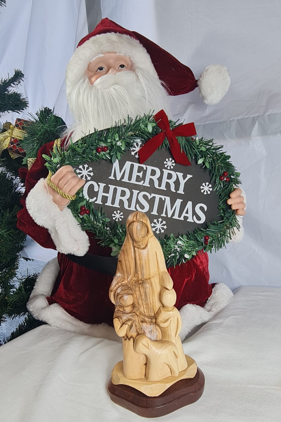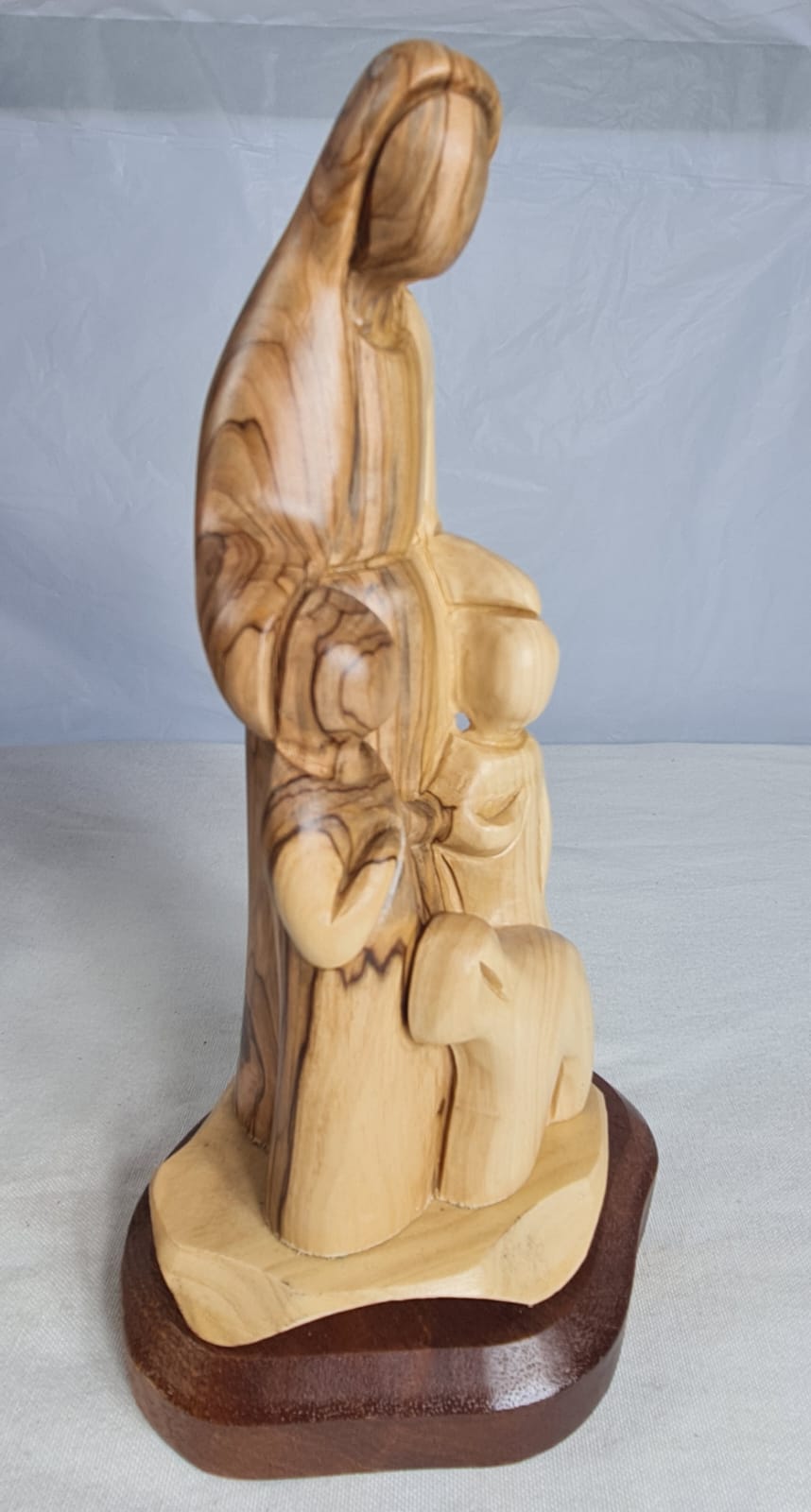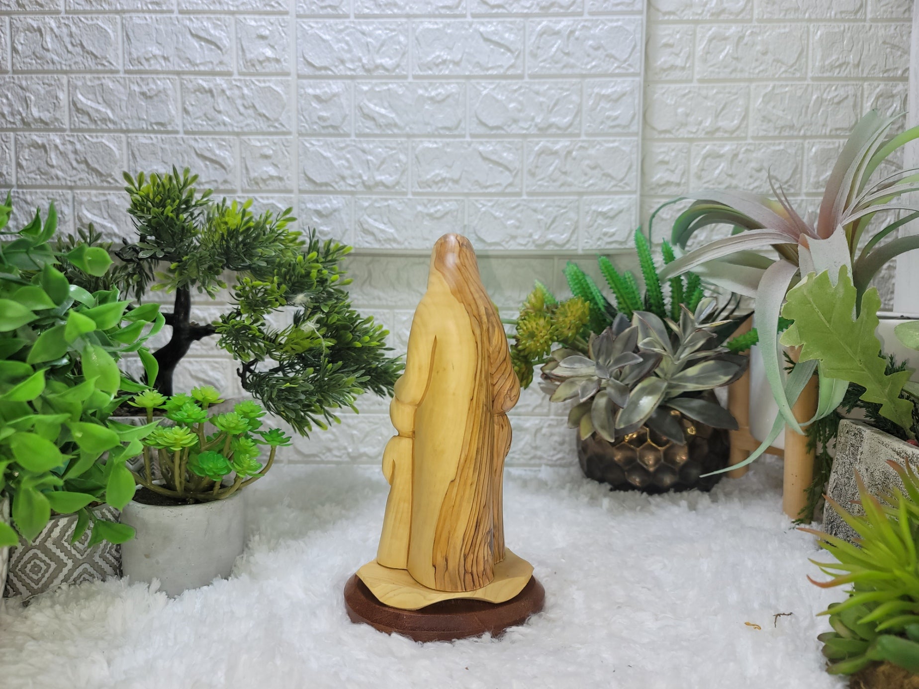 This olive wood statue of Jesus with children and a lamb, often symbolizing themes of love, guidance, and innocence in Christian art. It is crafted from olive wood, a material revered for its durability and connection to biblical narratives and the Holy Land. Jesus represents love, guidance, and serenity, while the children embody purity and unwavering faith. The lamb often symbolizes Jesus as the Good Shepherd.