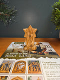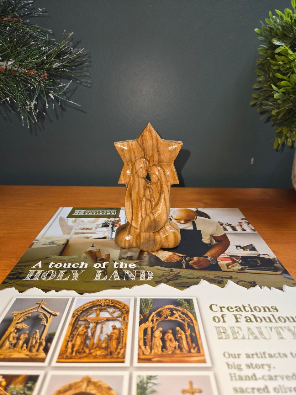 Olive Wood Nativity Scene_ Holy Family with Star Background