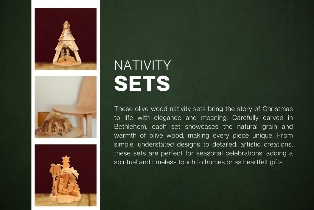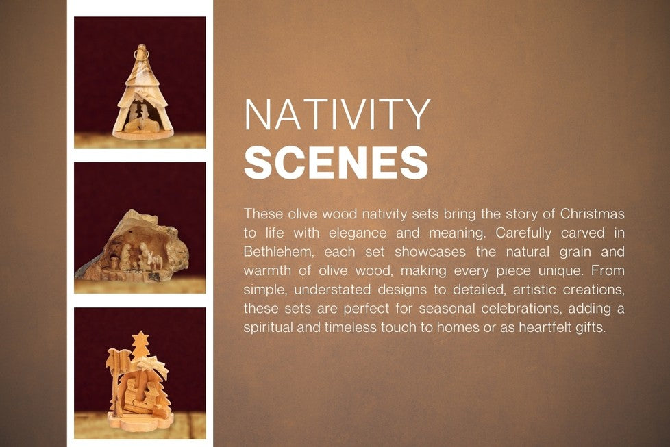 This handcrafted olive wood stable features a built-in musical mechanism that plays a classic Christmas melody. Made by skilled Bethlehem artisans, it is a beautiful standalone piece to enhance your Nativity display and holiday décor. Size: 25X27CM