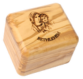 Hand-carved from authentic Jerusalem olive wood, this box features a detailed carving of Mary with Jesus and an engraved "Bethlehem" Perfect for storing rosaries or jewellery, it is a timeless keepsake reflecting Bethlehem's spiritual significance. Size: 7X6 CM