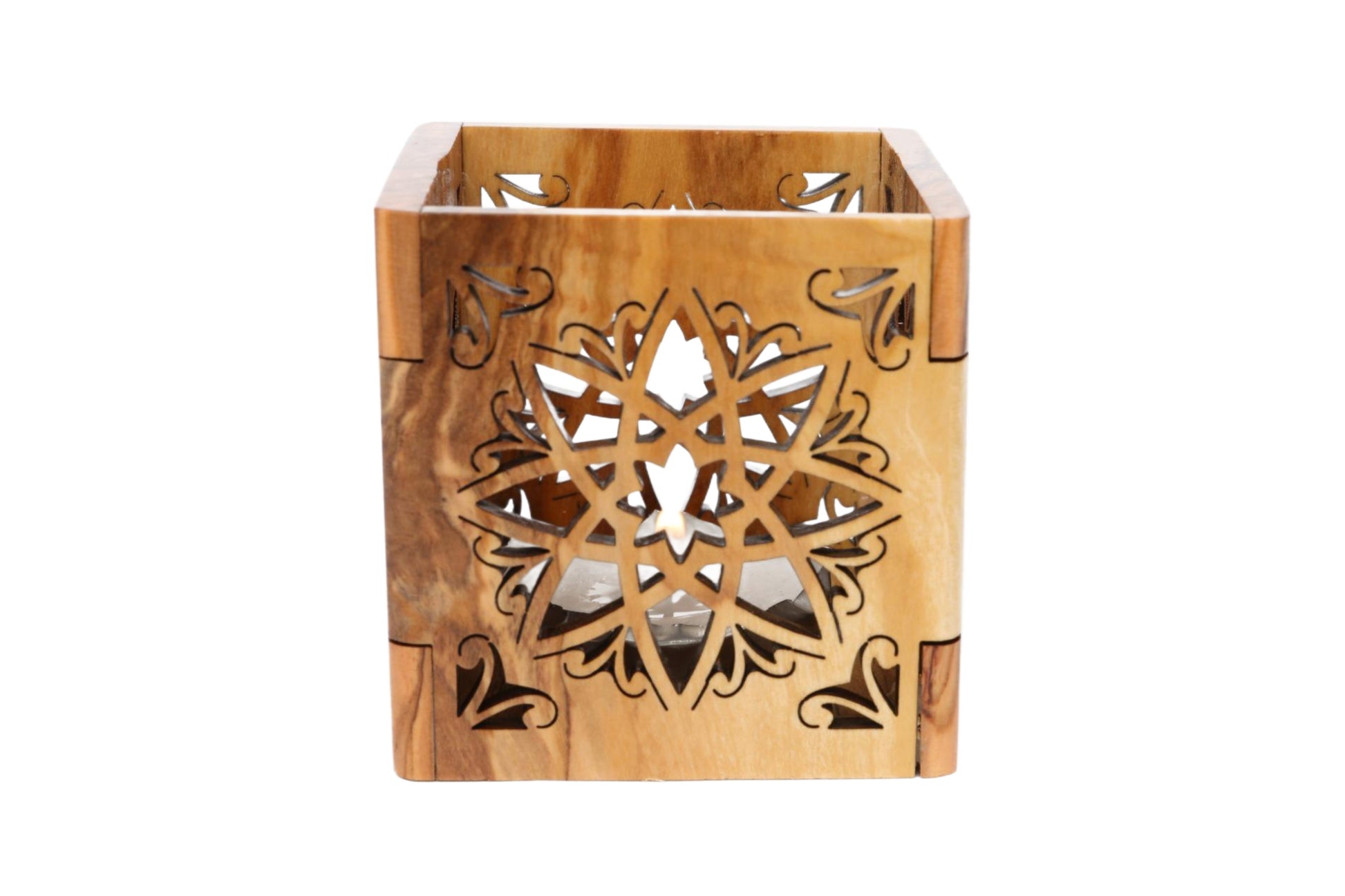 This elegantly handcrafted olive wood votive candle holder features a delicately laser-carved dove on the sides, symbolizing peace. Made in Bethlehem, it is a meaningful and beautiful addition to your home or sacred space. Size: 25CM