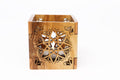 This beautifully handcrafted olive wood votive candle holder features intricately laser-carved star designs, highlighting the natural elegance of the wood. Made in Bethlehem, it is a meaningful and stylish addition to your home or holiday décor. Size: 6CM