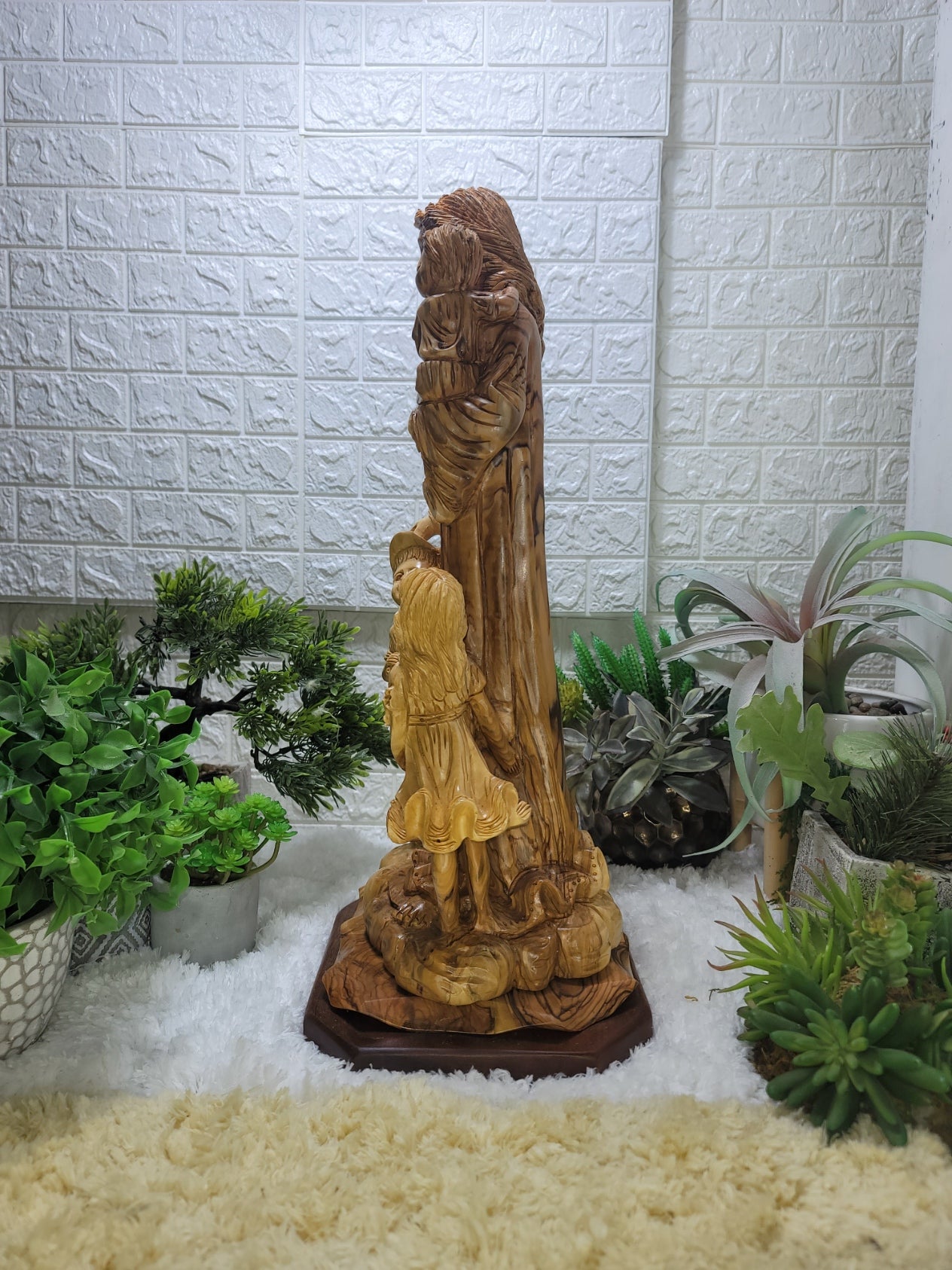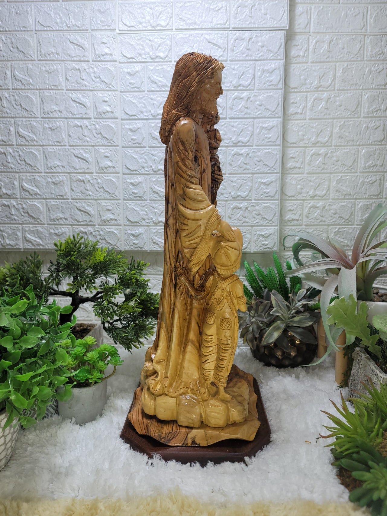 This is a hand-carved olive wood statue depicting Jesus with children, often referred to as "Jesus with the Children".