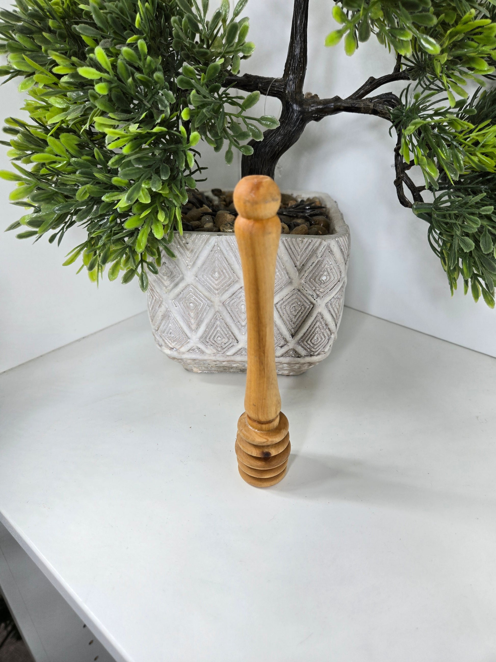 Enhance your mornings with this traditional honey dipper, handcrafted in Tunisia from olive wood. Its circular grooves make it easy to scoop and drizzle honey or syrup with precision and charm. Size: 14X2.5 CM