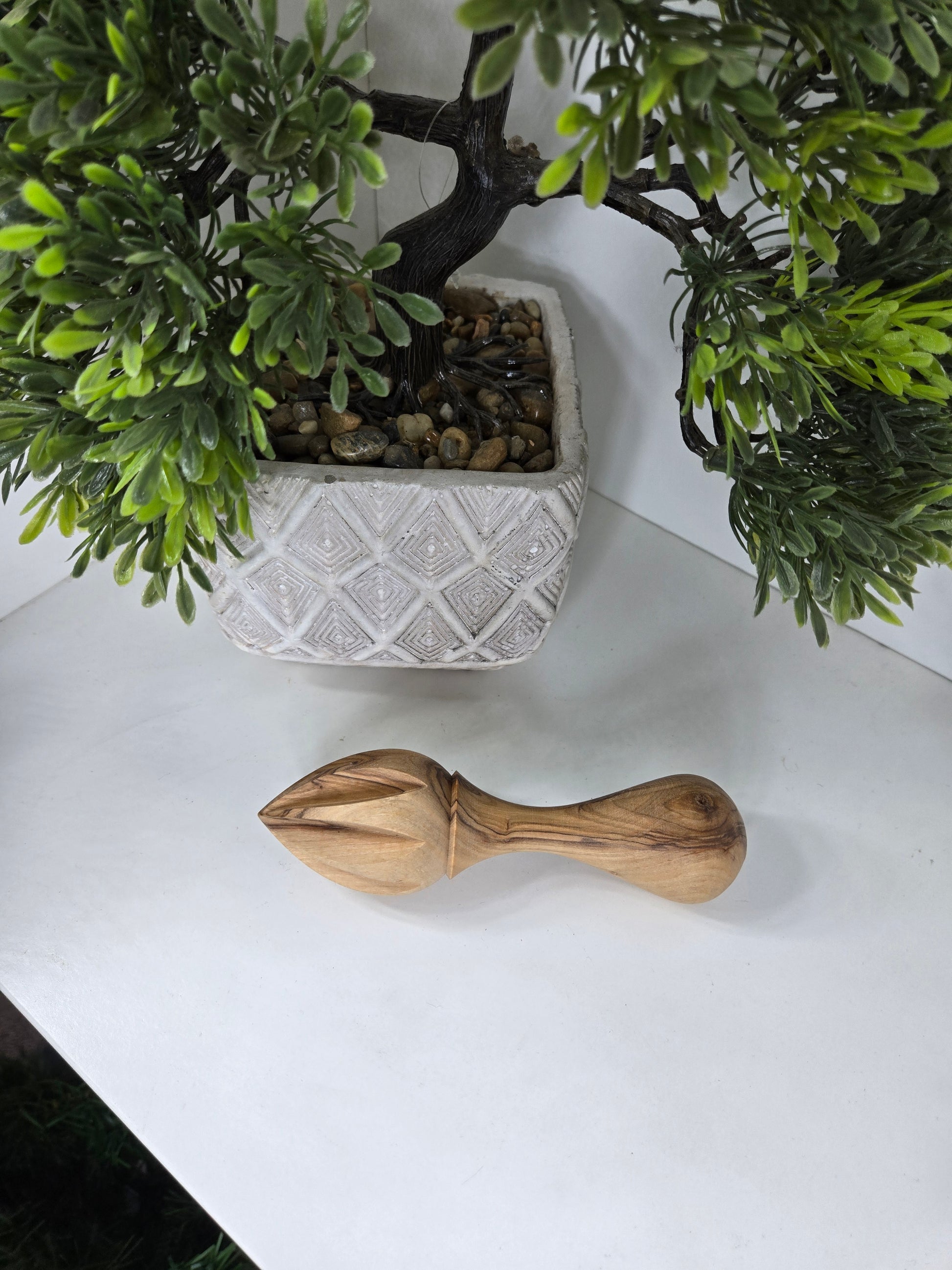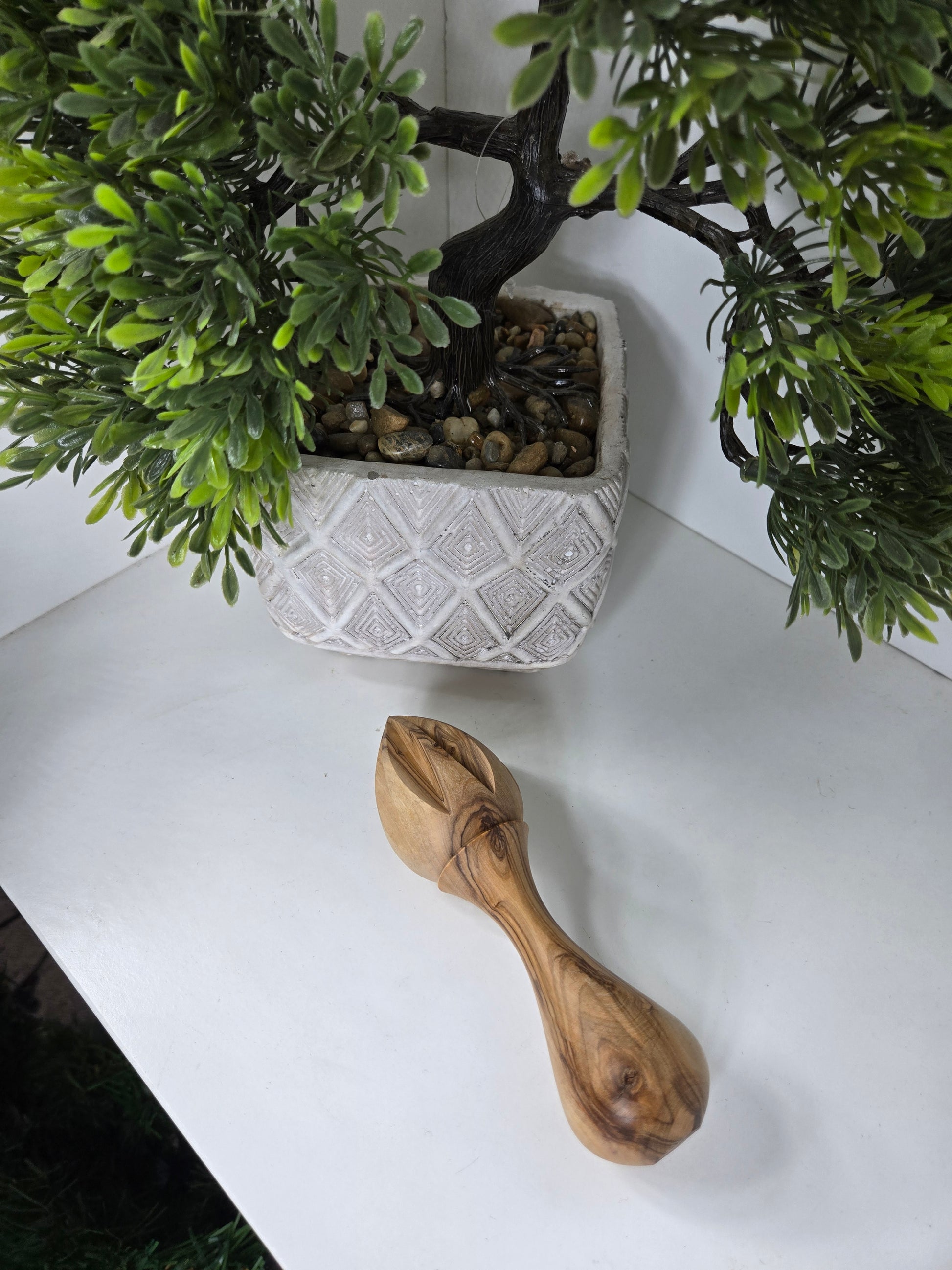 This elegantly handcrafted olive wood juicer is both functional and stylish, making it perfect for extracting fresh juice while showcasing the natural beauty of the wood. Size: 15X5 CM