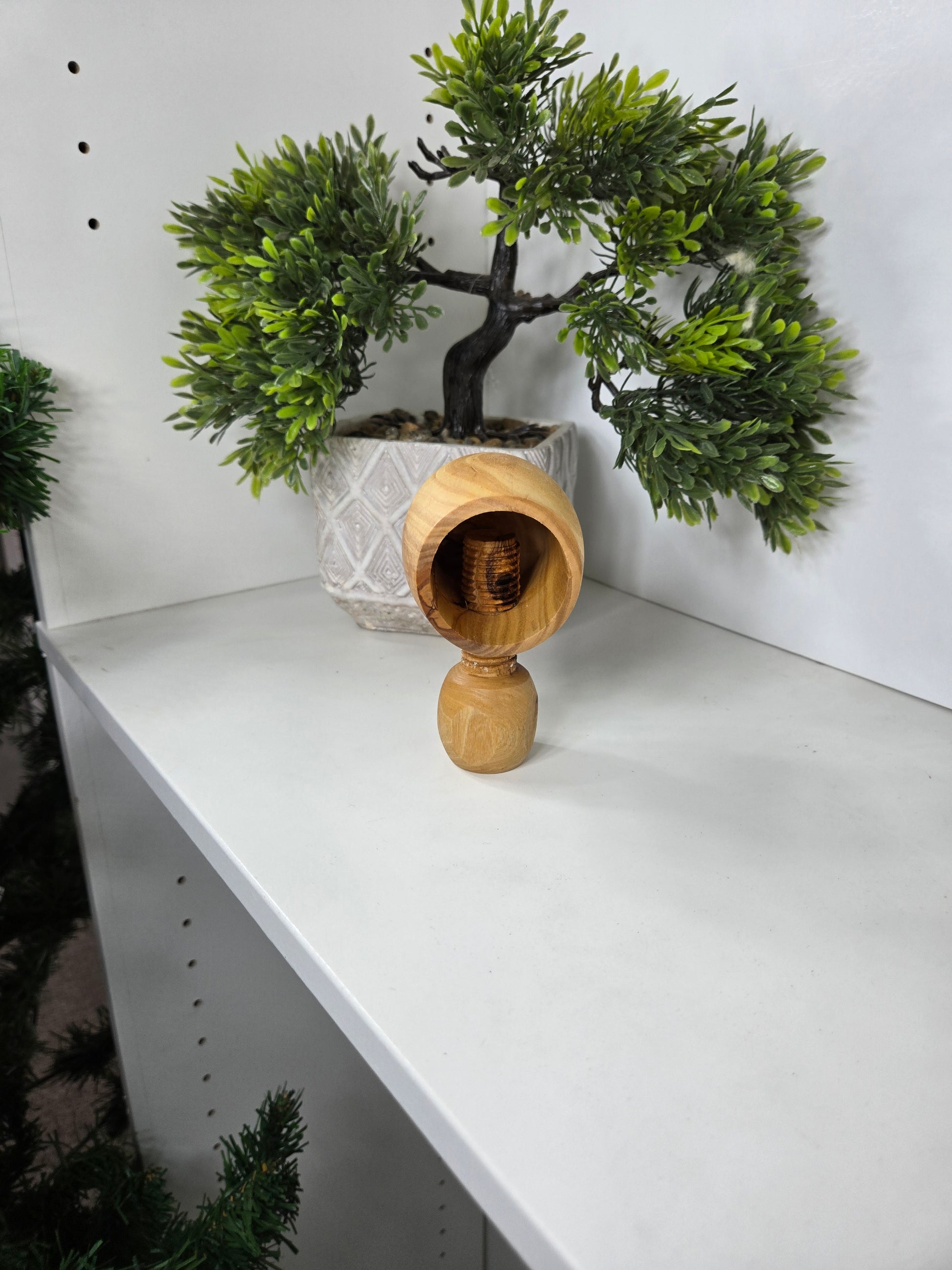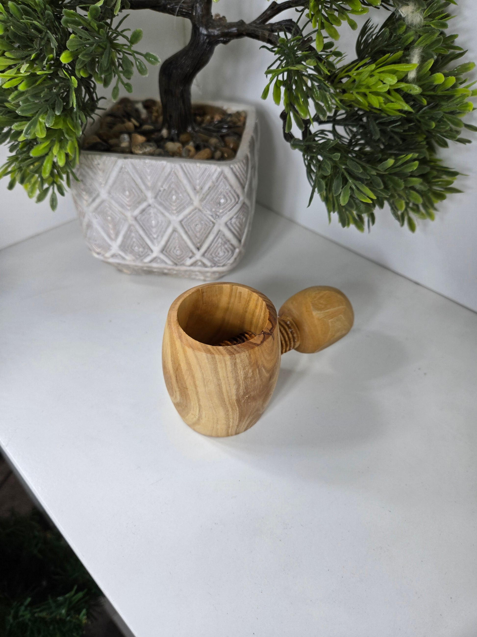 Enjoy cracking nuts with ease and style! This screw-operated olive wood nutcracker features a comfortable grip and a deep bowl to keep shells contained. Perfect for walnuts, peanuts, and more, it combines practicality with the natural beauty of handcrafted olive wood. Size: 11X6 CM