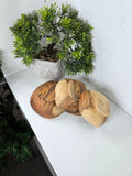 Handcrafted in Bethlehem from premium olive wood, this set of three bowls is perfect for serving olives, cheese, peanuts, and more. Their rich grain and versatile design combine practicality with natural beauty. Size: 14.5X14.5 CM