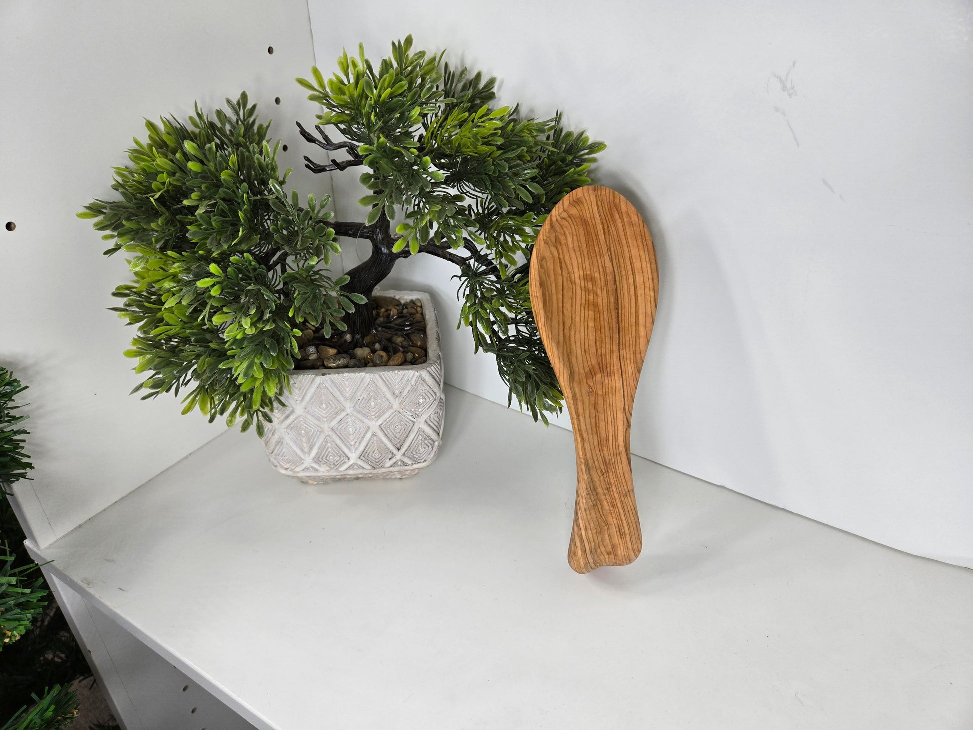 This elegant olive wood spoon rest offers a stylish and practical way to keep countertops clean while cooking. Showcasing the natural beauty of olive wood grain, it is a functional and timeless addition to any kitchen. Size: 22.5X7.5 CM