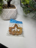 This unique ornament features a detailed Nativity scene set within a half-star design, intricately carved from olive wood. Handcrafted in Bethlehem, it is a meaningful and elegant addition to your holiday décor. Size: 8.5X8CM