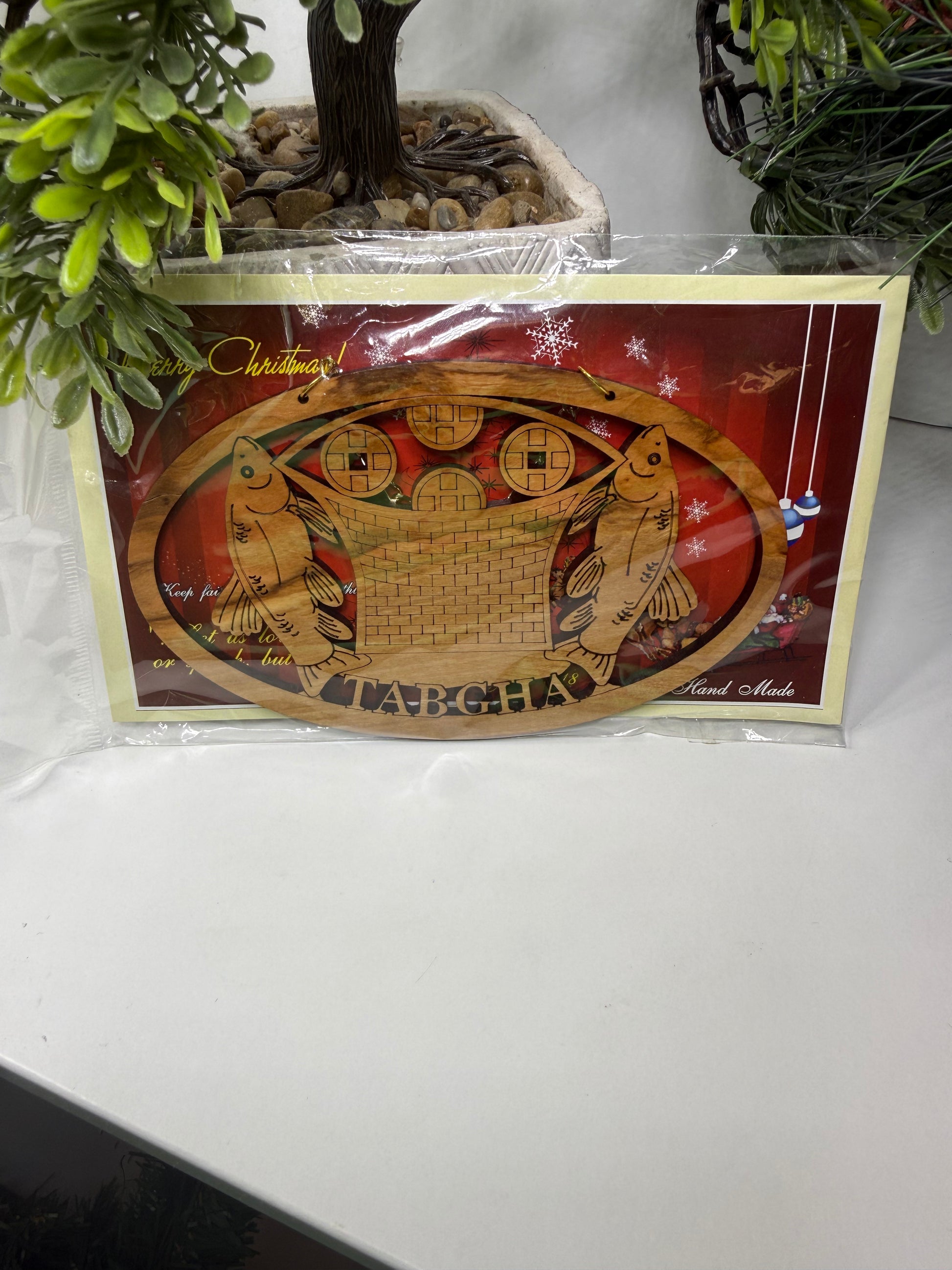 This intricately crafted olive wood plaque ornament depicts the Miracle of the Fish and Bread with fine details. A meaningful addition to your holiday décor, it celebrates faith and the spirit of giving. Size: 15CM