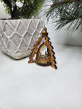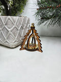 This beautifully crafted 3D Christmas tree ornament features silver oxide Nativity scene figurines nestled in olive wood. Handcrafted in Bethlehem, it is a unique and meaningful addition to your holiday décor. Size: 8CM