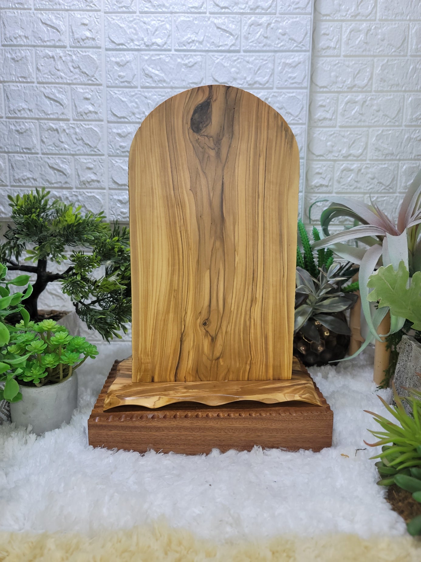 This is a hand-carved olive wood statue depicting St. Francis, made in Bethlehem. Crafted from olive wood, known for its unique grain patterns and durability. Handmade in Bethlehem, a region with a long tradition of olive wood carving. Features St. Francis, often depicted with animals, reflecting his connection to nature and compassion.