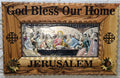 This plaque depicting The Last Supper, a famous biblical scene. Key features of this item include: Depiction: A 3D representation of The Last Supper, with figures appearing to stand out. frame: The plaque is set within a hand-laid olive wood frame. Origin: hand-carved in Bethlehem. Size 10x6x1