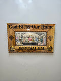 This plaque depicting The Last Supper, a famous biblical scene. Key features of this item include: Depiction: A 3D representation of The Last Supper, with figures appearing to stand out. frame: The plaque is set within a hand-laid olive wood frame. Origin: hand-carved in Bethlehem. Size 10x6x1